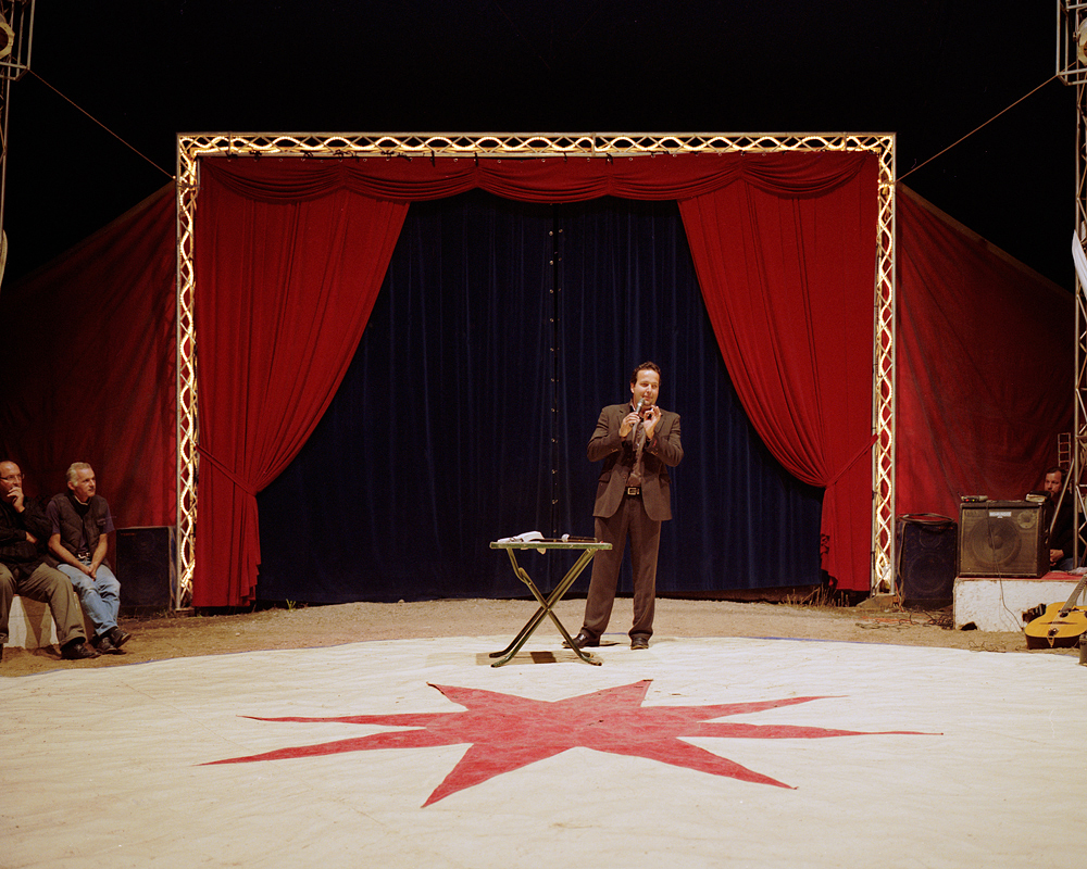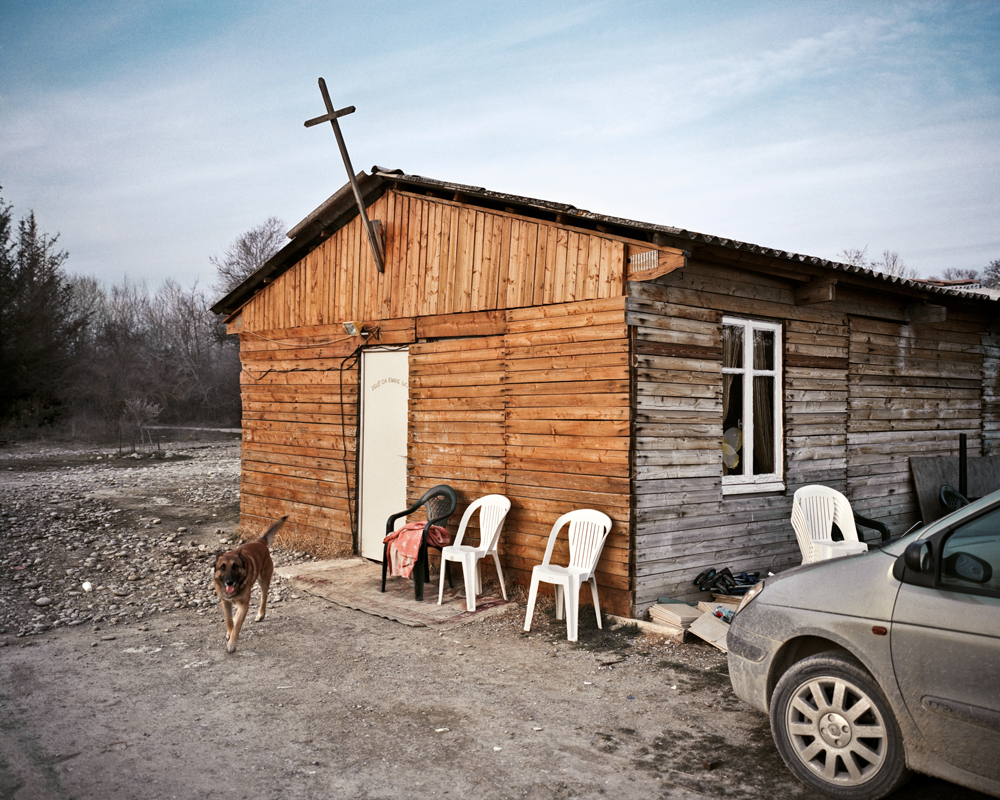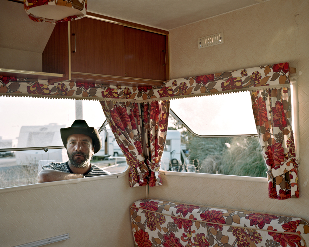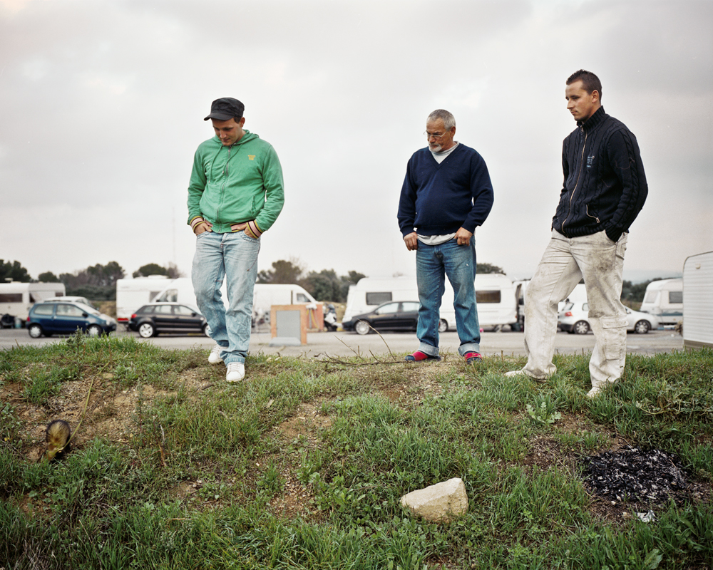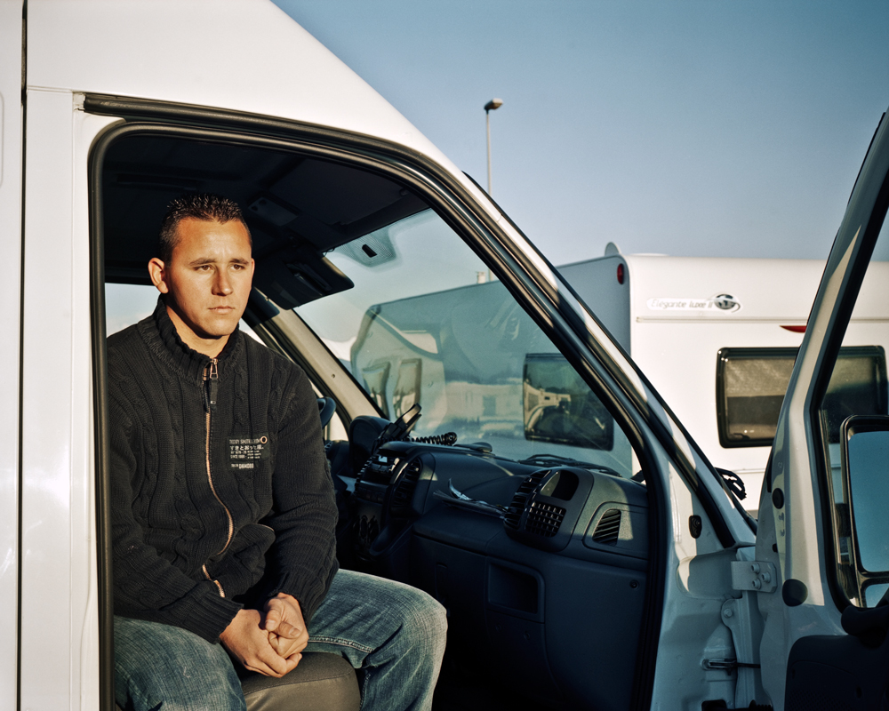 La notion de territoire fait référence à une étendue de terre, plus ou moins nettement délimitée, qui présente généralement une certaine unité, un caractère particulier. Je me suis intéressé à la notion de territoire parce qu’elle me semble être constitutive à la fois d’un ferment communautaire et identitaire tant d’un point de vue individuel que collectif. Le territoire est le contenant d’identité propre qui évolue en fonction du caractère particulier qu’il revêt. « Voyageur(s) » fait référence aux « habitants » d’un territoire « imaginé » que nous appellerons Voyage. Par cette proposition il devient l’espace symbolique dans lequel les individus peuvent inscrire leurs désirs. Cet espace est virtuellement habité par des gens - des « gens du Voyage » - qui n’ont au départ comme existence réelle que celle reconnue administrativement. Le mode de vie propre à cette communauté est directement issu de son histoire et de sa culture. Histoire et culture bien souvent éloignées des représentations que l’on peut en avoir. Une certaine manière d’être émerge de leur univers, où notamment des notions comme la famille, « le respect » et « l’honneur » prennent un sens particulier. Cette singularité, on la retrouve aussi lorsque l’on se penche sur la place de l’individu au sein de la communauté, sur l’espace dans lequel s’inscrit la vie quotidienne des voyageurs, espace où l’ensemble des activités familiales, professionnelles, culturelles et cultuelles semble former un tout unique et indissociable. Le contenu documentaire est ici porté au niveau d’une fresque méditative ou chaque photographie contient sa propre force narrative comme une référence à une image cinématographique qui induit plus qu’elle ne décrit. Cet espace imaginé existe parce qu’il est contenu dans un ensemble plus grand et que sa façon de se révéler, nous informe sur la manière d’affirmer une différence. La question de la sédentarité ou du nomadisme n’a d’importance qu’au regard des possibilités offertes à chacun. Le voyage lui reste la conversion symbolique de référence. Une façon de se définir, d’exister, d’être au monde, de résister avant d’être absorbé. Ce n’est pas le folklore, mais la représentation de ce rêve commun qui importe. Rêve qui invente ses propres lieux, ses utopies, son intranquilité, sa solitude aussi. | ![]() | ![]() | ![]() | ![]() | ![]() | ![]() | ![]() | ![]() | ![]() | ![]() | ![]() | ![]() | ![]() | ![]() | ![]() |