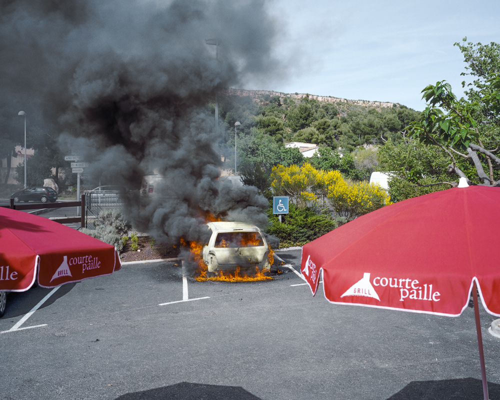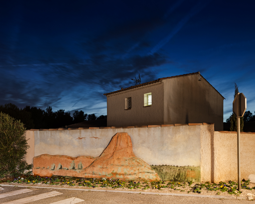 « C’est l’insistance dans une conduite qui livre son intention ». Roland BARTHES, Mythologies Springfield est le nom de cette ville fictive, espace théâtral imaginaire où se jouent les aventures des célèbres héros d’un dessin animé satirique. C’est aussi, et pour cette référence, le surnom affectueux de cette petite ville née de l’imagination des aménageurs et porteuse de nombreux espoirs tel que l’annonçait Henri Loubet : “Le Ministre de la Reconstruction tente l’expérience unique dans notre pays, de créer de toutes pièces la cité moderne, la cité modèle. Nous tenterons jusqu’à usure de nos forces, de justifier ce choix, par un labeur constant... “ (H.Loubet, Maire de Vitrolles,1946.) La ville nouvelle de Vitrolles va être créée de toutes pièces donnant à ses élus et aux nouveaux habitants des airs de pionniers devant conquérir un nouveau territoire pour le façonner, et en faire leur lieu de vie. Le paysage, espace théâtral réel cette fois, est celui de la ville nouvelle et du mythe qu’il porte. Par ses paysages naturels, ses grandes avenues, Vitrolles a des airs de banlieue américaine. C'est précisément cela que cette série nous donne à voir, les terres rouges du plateau avec ses rochers qui nous évoquent les Rocheuses, les grosses voitures, le cinéma ... En prenant ces photographies, je contribue, par la forme que je leur donne et l’interprétation du réel que je fais, à créer ce mythe. Elles nous révèlent la ville au travers d’un regard décalé. Il n'est pas question de montrer Vitrolles en tant que telle, mais de nous la raconter à travers son surnom, telle que je la perçois. Ce travail repose sur l’imaginaire des représentations et des désirs à partir d’un point de vue qui, s’il procède d’une interprétation, s’élabore néanmoins à partir du réel. | ![]() | ![]() | ![]() | ![]() | ![]() | ![]() | ![]() | ![]() | ![]() | ![]() | ![]() | ![]() | ![]() | ![]() | ![]() | ![]() | ![]() | ![]() | ![]() | ![]() | ![]() | ![]() | ![]() | ![]() | ![]() | ![]() | ![]() | ![]() | ![]() | ![]() | ![]() | ![]() | ![]() | ![]() | ![]() | ![]() | ![]() | ![]() | ![]() | ![]() | ![]() | ![]() |