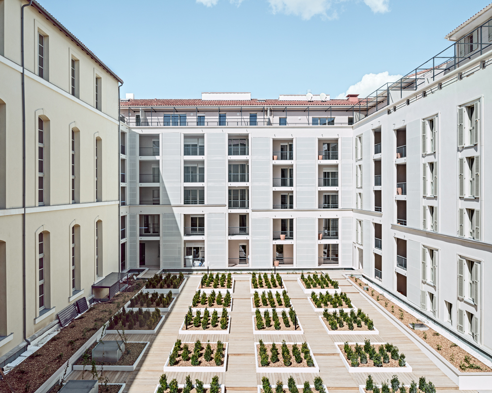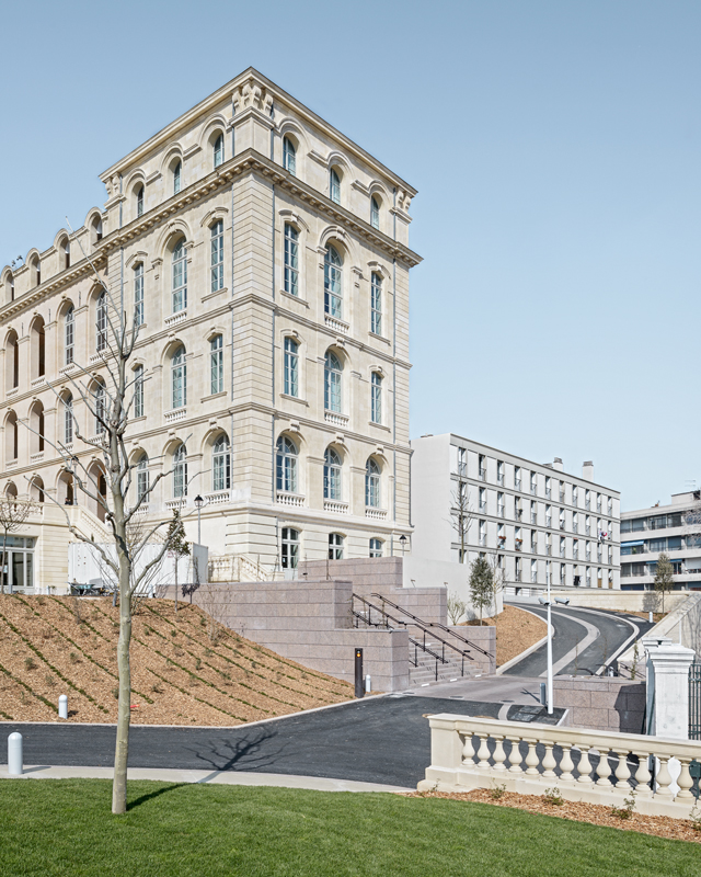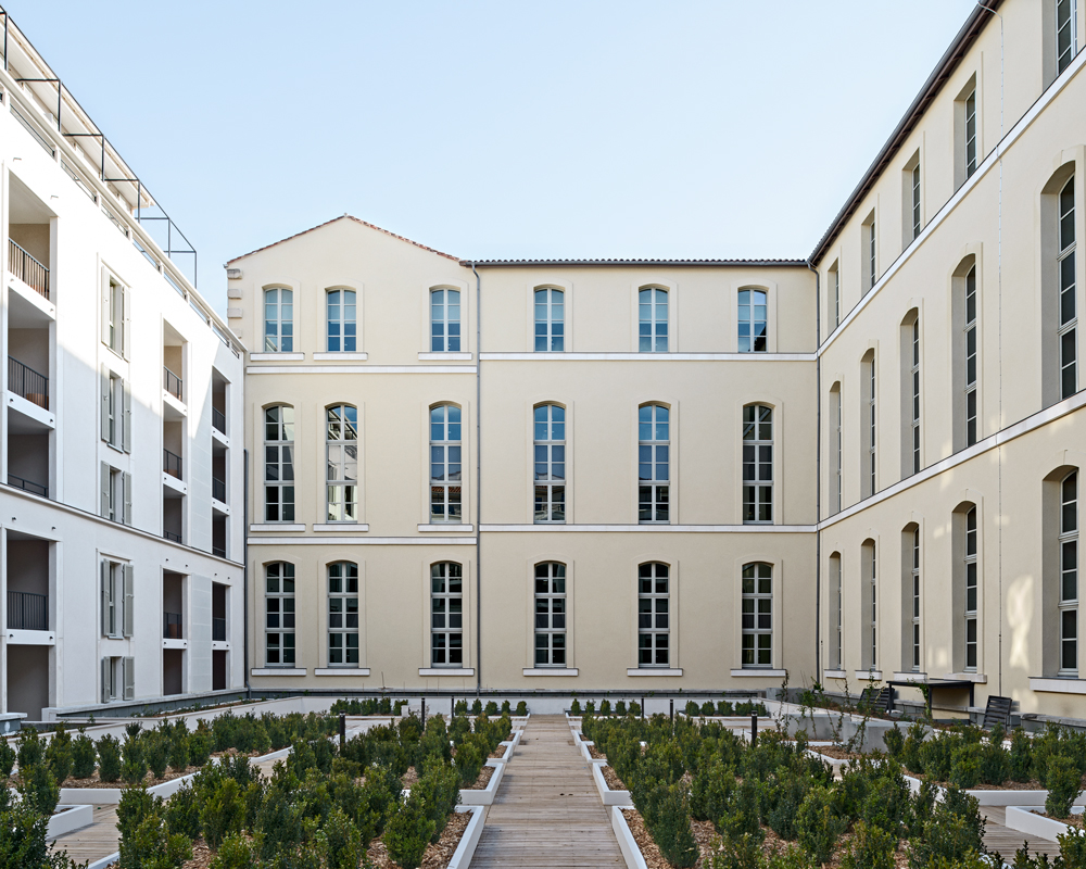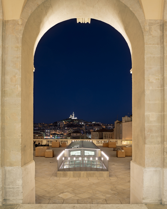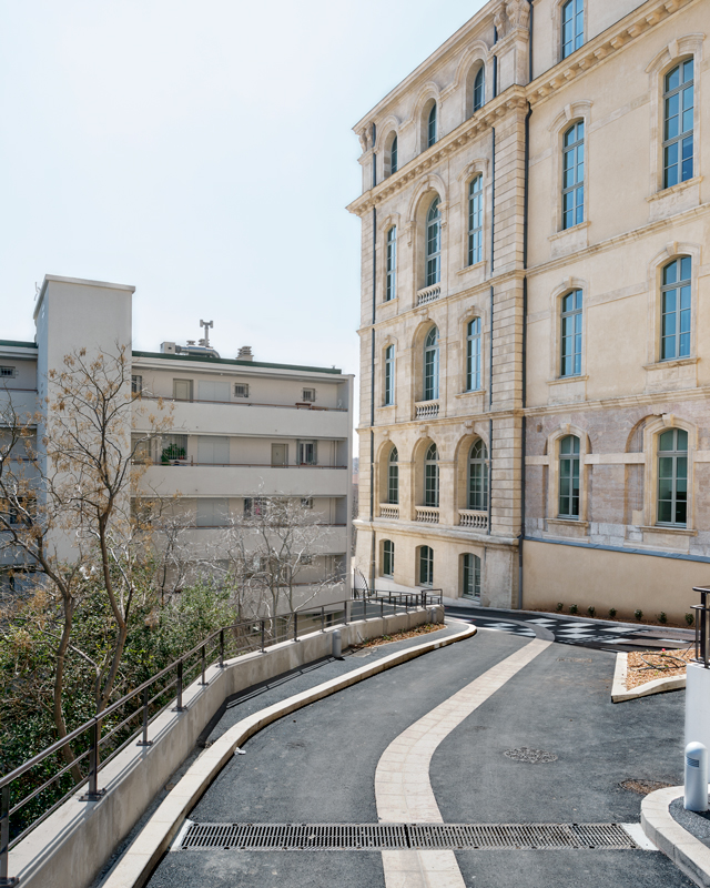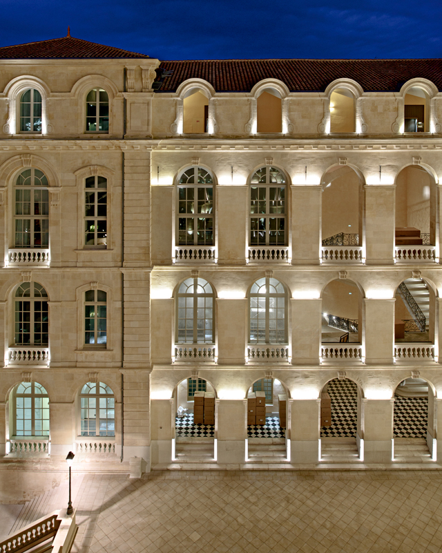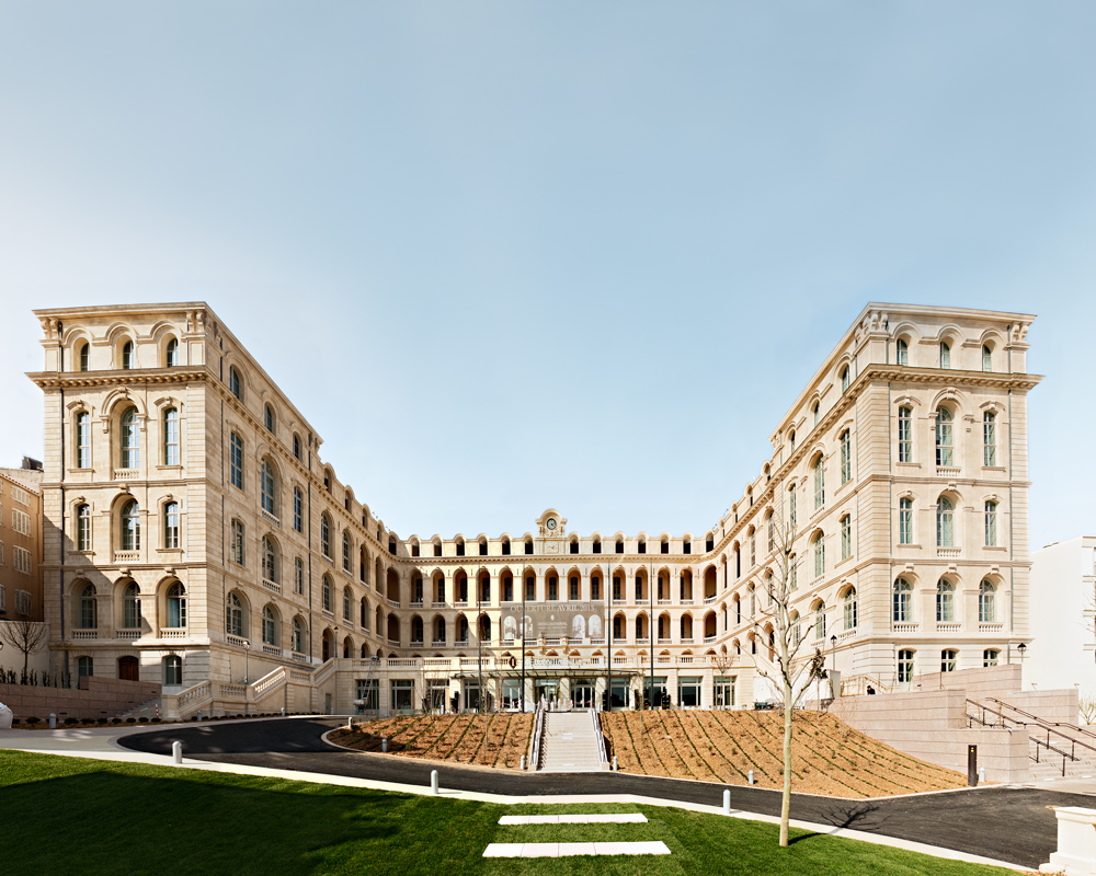 Le projet est complété en partie Nord-Est du site, par un programme de 85 logements, tournés vers le Panier. Élu « Meilleur projet de rénovation urbaine » lors des MIPIM Awards 2014, et sélectionné dans la « Hot List 2014 des meilleurs nouveaux hôtels au monde » par le prestigieux magazine de voyages Condé Nast Traveller, l’InterContinental Marseille a ouvert ses portes en avril 2013 dans l’historique Hôtel-Dieu de la Cité phocéenne, inauguré en son temps par Napoléon III. La reconversion de l’Hôtel-Dieu de Marseille en hôtel 5 étoiles a nécessité huit années d’études et de travaux. Anthony Béchu (mandataire) et Tangram Architectes ont mené la conception puis la réalisation de ce projet aux côtés d’Axa (investisseur), de Altaréa Cogédim (promoteur) et d’InterContinental (exploitant). L’architecture intérieure a été réalisée par Jean-Philippe Nuel, Tangram Architectes et Volume ABC. Les études techniques ont été menées par Egis Bâtiment. Clients, Altaréa Cogedim, Anthony Béchu Architecte, Tangram, Volume ABC |